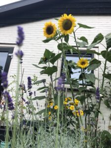 We zitten volop in het oogstseizoen. Er worden lekkere gerechten bedacht bij de groenten die geoogst worden. Tegelijk bedenken we al welke groenten volgend jaar leuk zouden zijn om te proberen. En bekijk vooral eens die zonnebloemen, die stelen de show! Nu de zomer een beetje op zijn einde begint te lopen gaan we ook kijken naar activiteiten voor het volgend seizoen. Daarvoor kunnen we in onze nieuwe dagbestedingsruimte aan de slag.