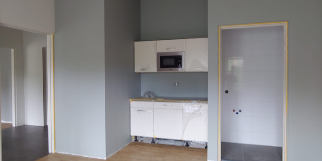“De schilders zijn een eind op weg met het sauzen. Hier een kijkje in de logeerkamer voor kortdurend verblijf.” juli 5, 2023